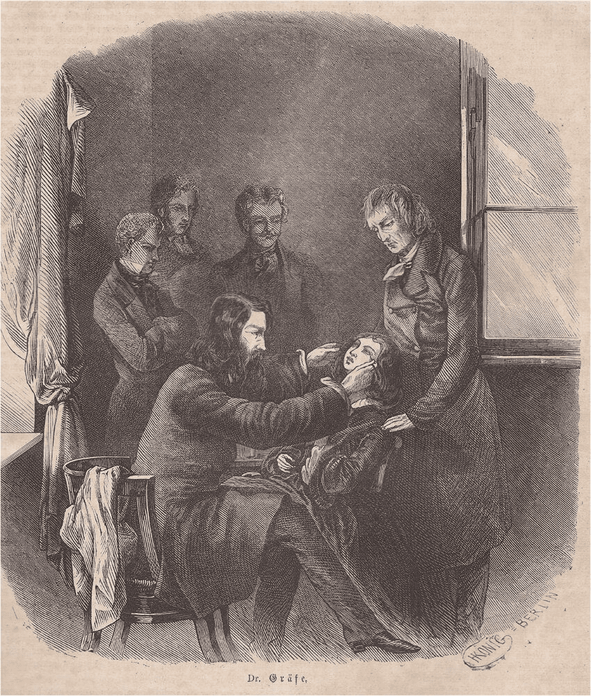 Albrecht von Graefe wurde berühmt als Begründer der modernen Augenheilkunde. Er bewies den Zusammenhang zwischen Augenkrankheiten und inneren oder neurologischen Erkrankungen wie Diabetes, Nierenproblemen oder erhöhtem Hirndruck. Er war der erste, der in der Praxis ein Ophthalmoskop einsetzte, um den Augenhintergrund der Patienten zu untersuchen.