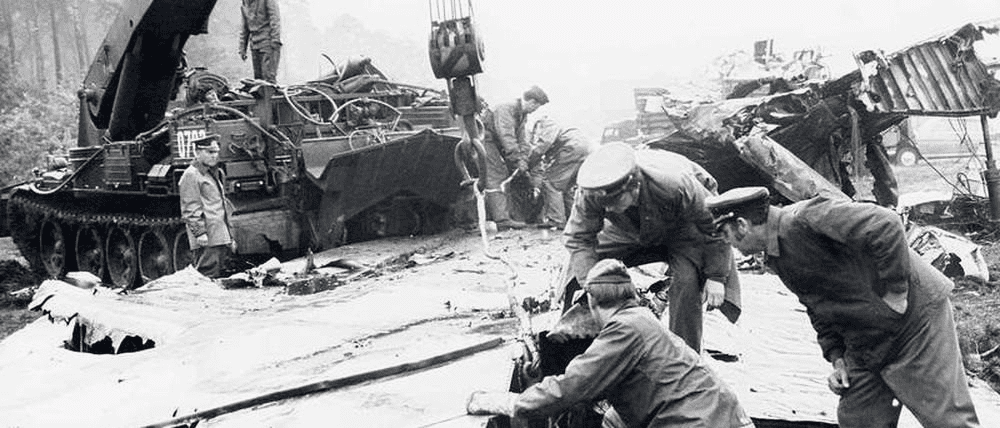 Dieses Flugzeugunglück gilt als das schlimmste, das je auf deutschem Boden geschah. 148 Passagiere – die meisten aus Cottbus, Dresden oder Berlin – und acht Besatzungsmitglieder verloren ihr Leben. Bis heute kursieren verschiedene Gerüchte über die Ursache des Absturzes, da die DDR-Regierung die Ergebnisse der Untersuchung aus politischen Gründen geheim hielt.