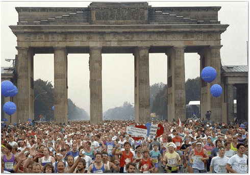 Drei Tage vor der deutschen Wiedervereinigung führte die Strecke erstmals durch das Brandenburger Tor. Viele Läufer und Zuschauer vergossen Tränen der Freude – der Marathon wurde zu einem Symbol der Einheit.