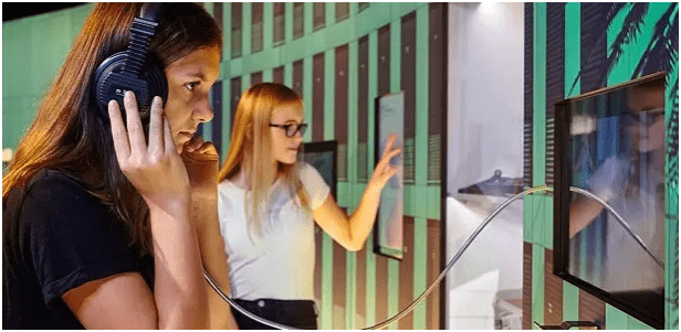 Все презентации сопровождаются мультимедийной инсталляцией, экспонаты можно изучать с помощью сенсорных экранов, витрины снабжены дисплеями с информацией. Испытать себя в качестве взрослых или юных шпионов можно на интерактивных станциях. Мультимедийные установки от “Ars Electronica Solutions” признаны уникальными в мире, посетители могут кодировать сообщения, проверять свои навыки на лазерном курсе или посмотреть, какую информацию собрал о них Facebook.